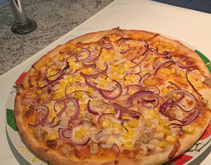 123 Mozzarella sajt, csirkemell roston, kukorica, lilahagyma