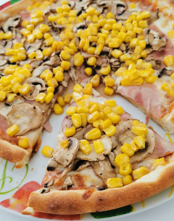 123 Mozzarella sajt, gomba, kukorica, sonka