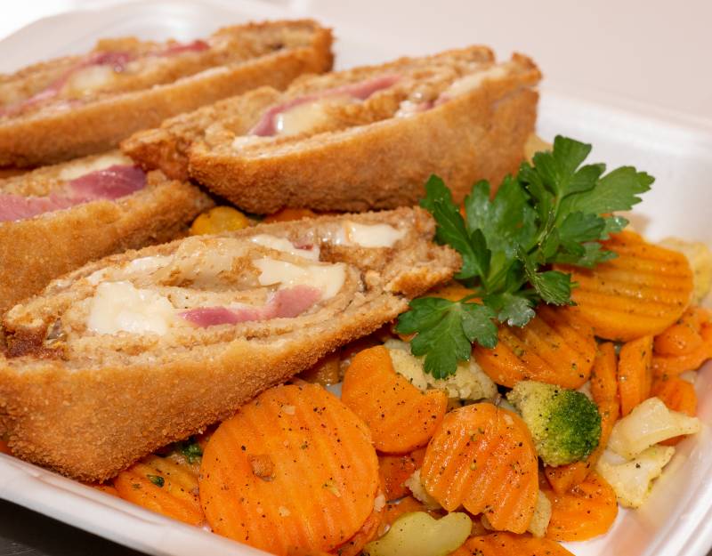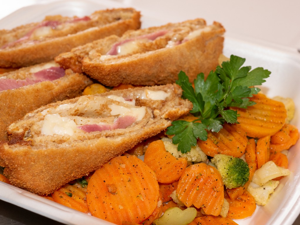 Eidami-ementáli-mozzarella-füstölt mozzarella, Főtt tarja, friss zöldségek